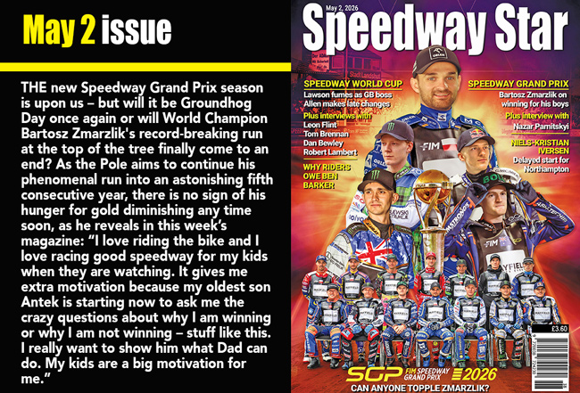 Meeting of the Week: SEC qualifier, Mureck • Off the Beaten Track • Polish Scene • SWC semi-final preview: Leon Madsen, Dan Bewley, Tom Brennan and Robert Lambert.